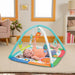 Make playtime a sweet safari of activity with the Wild Wiggles Jungle Jubilee FoldAway Activity Gym from Bright Starts, the #1 Manufacturer of Play Gyms.* Your king or queen of the jungle will love to kick, lay and play on this tummy time mat! With a space-saving FoldAway toy bar and 5 toys included, there’s so much fun in one compact space. Includes plush lion toy, self-discovery mirror, cloud-shaped rattle, silicone leaf toy, and textured rings. The tummy time toys all come on removable links, so you can transform your play mat toys into stroller toys! This play gym for baby is filled with bright colorful animal characters, featuring a lion, giraffe, elephant, koala, hippo, alligator, and monkey. Capture your baby’s attention with 10 Taggies and encourage the development of motor skills with every activity. The toy bar easily removes as your wild child begins to grow and roam around this jungle gym.