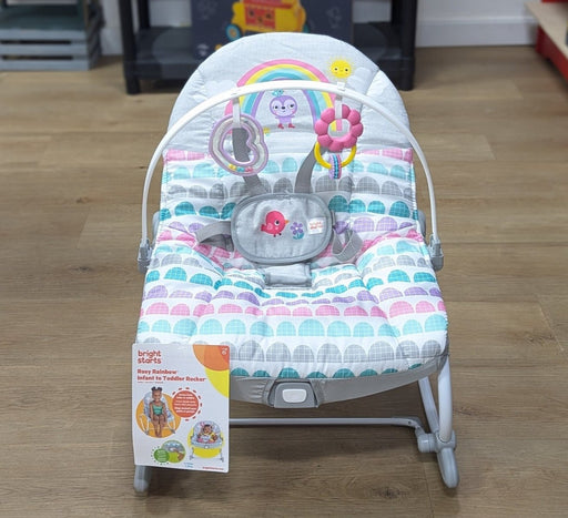 Bright StartsFrom birth to 4 years old. Get years of use with this multi-function seat! The Bright Starts Infant to Toddler Rocker transforms from rocker to st...