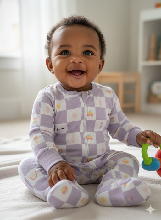 GerberSweet dreams and sunny playtimes await with this charming purple and white checker baby girl Sleep 'N Play, featuring a delightful mix of ice cream...