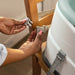 - This easy to clean feeding seat has a removable BPA-free tray that can be stored neatly under the booster seat; clean the base and foam insert by wiping clean with damp cloth and mild soap and let air dry; tray is dishwasher safe